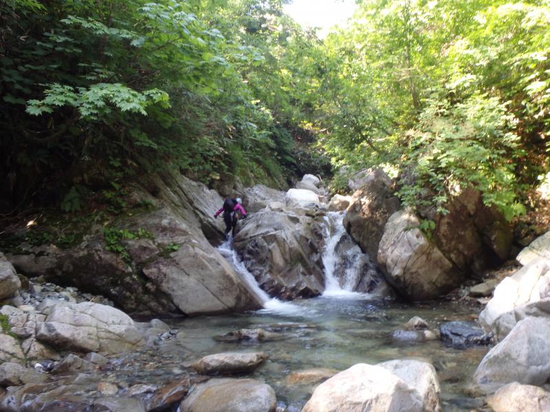 Ⅳ級程度の滝が多いので、状況によっては頻繁にロープを出さなくてはならないでしょう。