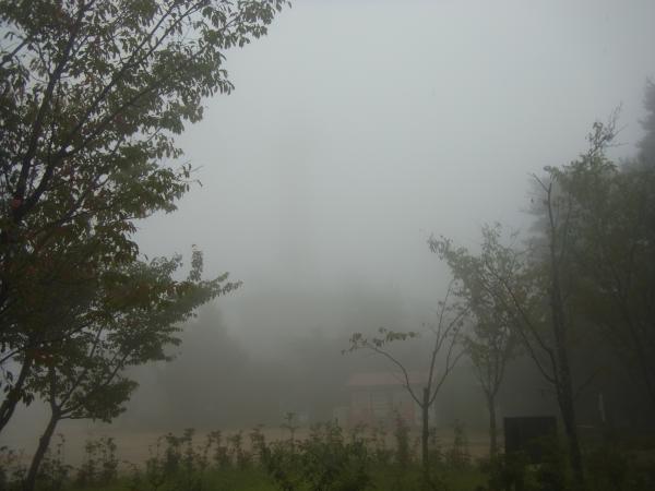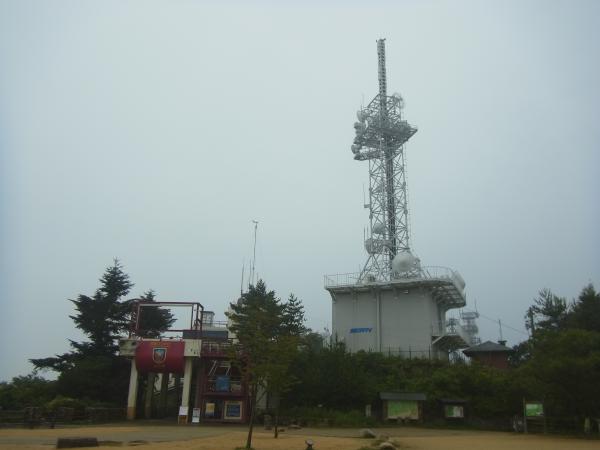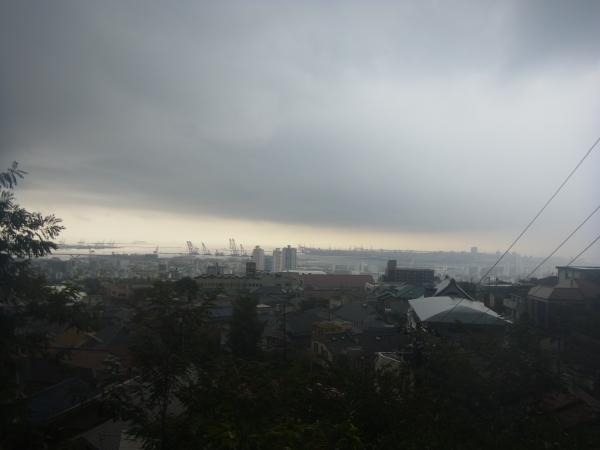 今日はいつも通過しがちな摩耶山三角点に立ち寄り、掬星台で昼食。あずまやの屋根がありがたい。雨のせいで観光客は皆無です。他には同じくイノシシのせいで進路変更のトレランカップル、と大学生らしきグループが数名。晴れだといつも掬星台はにぎやかなんですけどね。