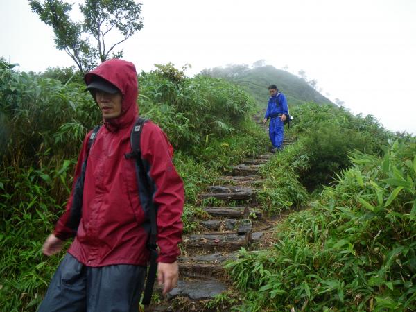 雨の中の下山。