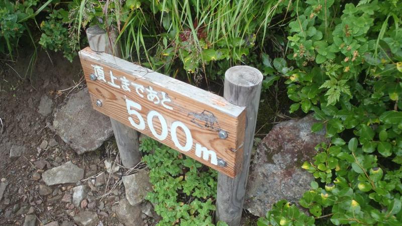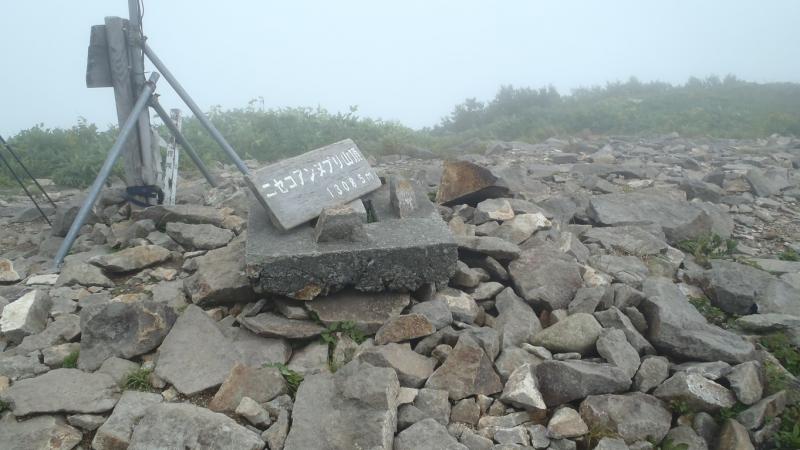 札幌から五色温泉までの車中ではキレイに羊蹄山が見えたのですが、登り始める頃には何やら曇り空に・・。次第に濃くなるガス、ルートは意外と大きい石がゴロゴロしておりちょっと歩きづらい。それでも2時間かからずに頂上到着。残念ながら眺望はまるでなく、避難小屋で休んで降りてきました。