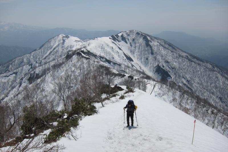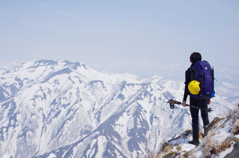 気温は日中で-5℃~-7℃くらいでしたが、春山なので日差しが強く体感では非常に暑いです。