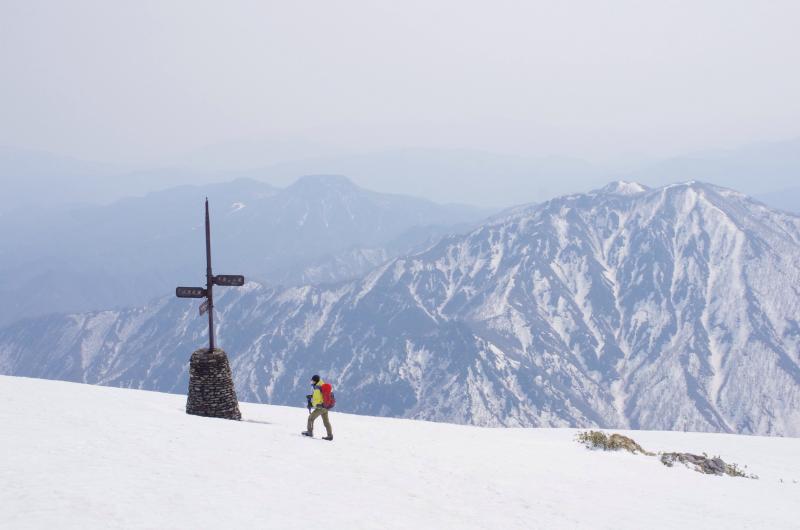 北側には朝日岳、巻機山、東側には尾瀬の至仏山、武尊山、南側には赤城山が見え、終始快晴で展望も最高でした。