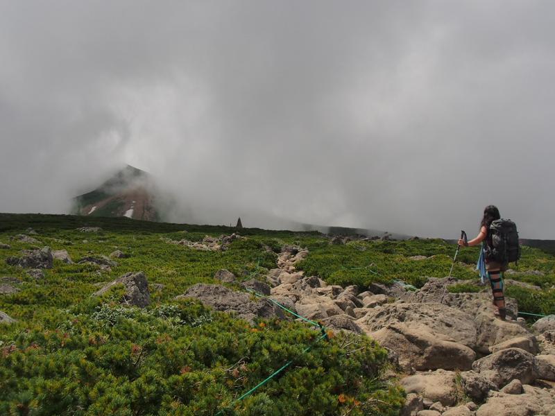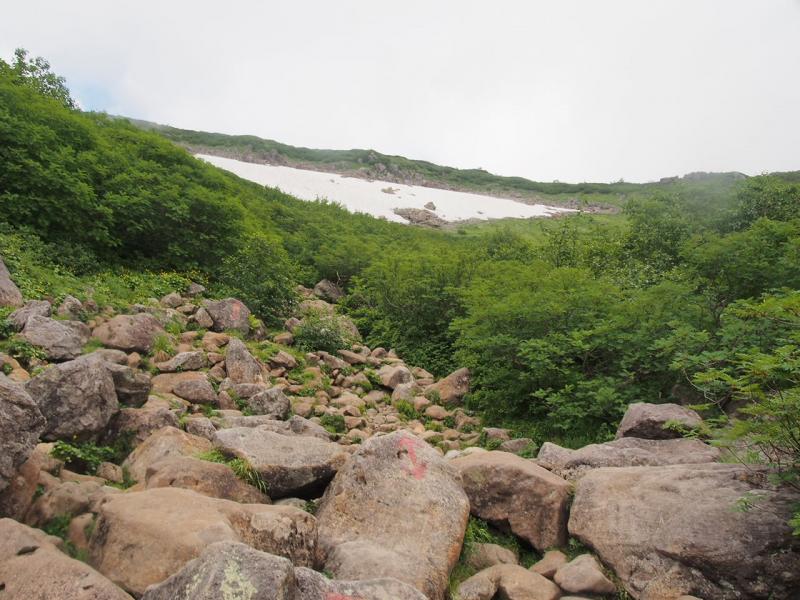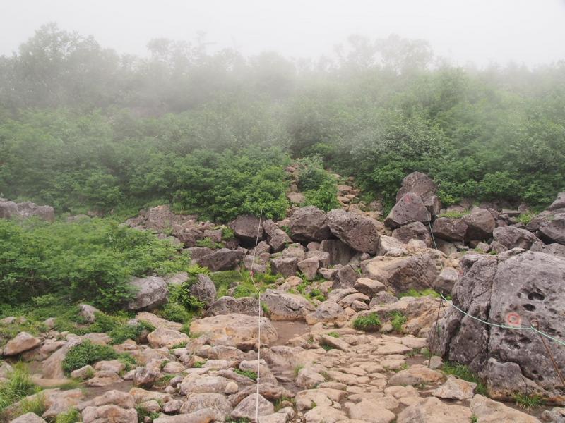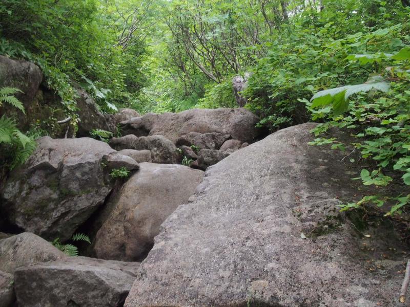 白馬乗鞍岳までは大きなゴロゴロした安山岩の上を歩く。
