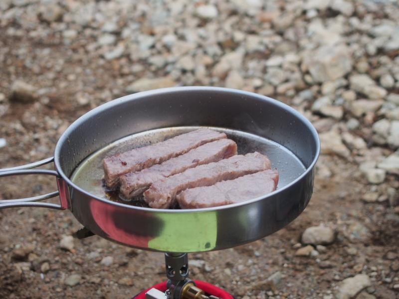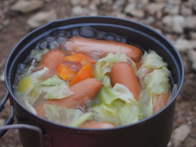 そして白馬大池でテントを張ってゆっくり過ごしました。昼寝して良い時間になったので夕飯の準備。今回はステーキとポトフとご飯も炊きました♪特に肉を持っていくときは肉の水分が漏れないよう注意が必要ですね。