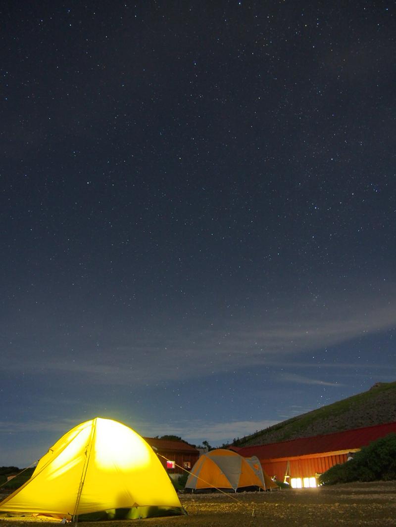 夜は星空、2日目朝は白馬大池に映る朝焼けが見え、テント泊の醍醐味を楽しめました♪