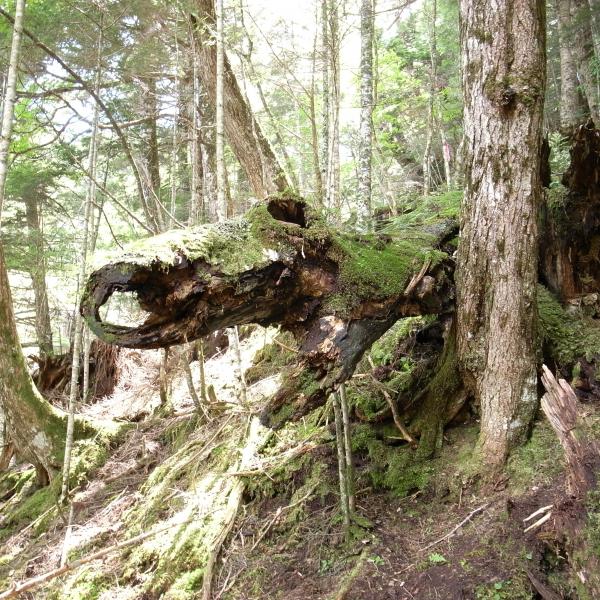 黒百合ヒュッテから渋の湯までの道も、苔むした岩だらけです。