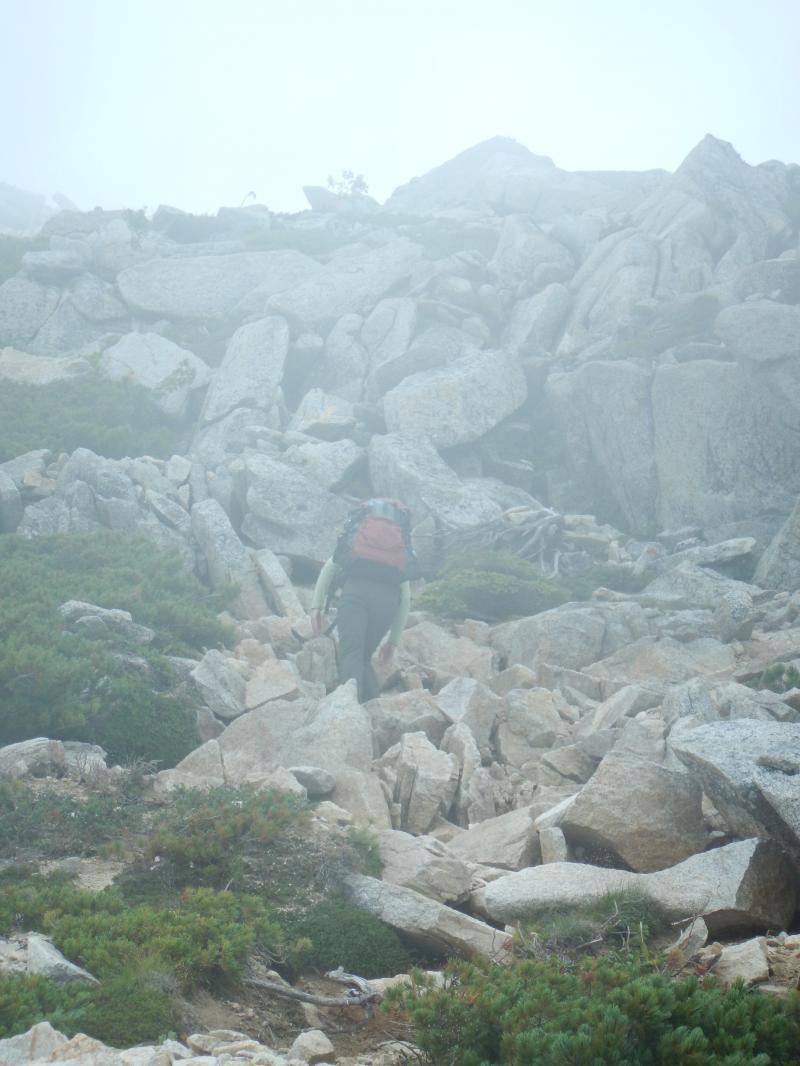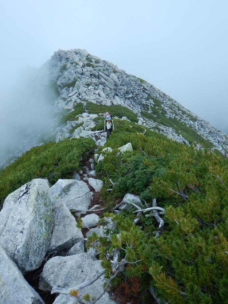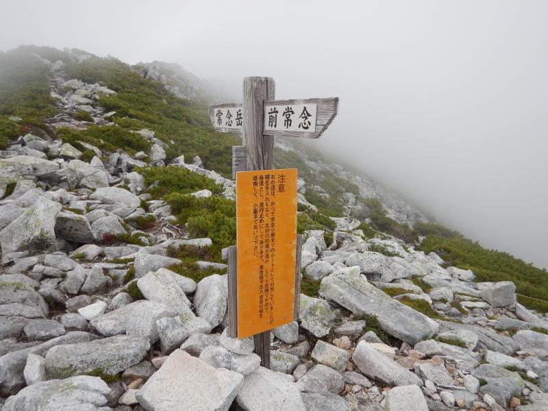 前常念あたりからはガスに巻かれて全く景色を楽しむこともなく真っ白な空間をただ登ります。
