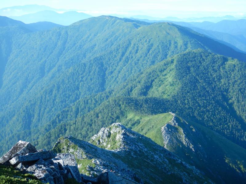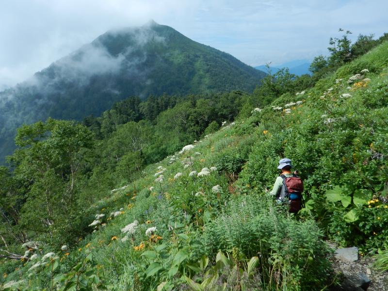 蝶ヶ岳から三股も急坂だがよく整備されている。