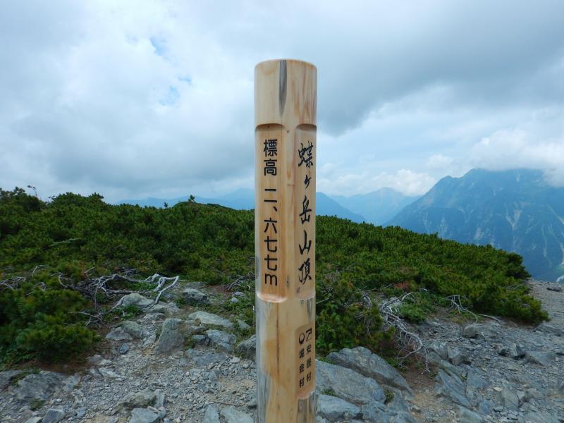 2日目:常念小屋-(75)-常念岳-(180)-蝶槍-(45)-蝶ヶ岳ヒュッテ-(5)-蝶ヶ岳-(180)-三股駐車場