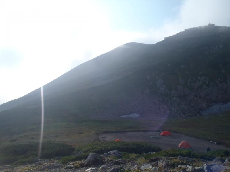 駆け足気味に白雲岳避難小屋のテン場まで行き、夕方には雨が上がりのんびり過ごせました。