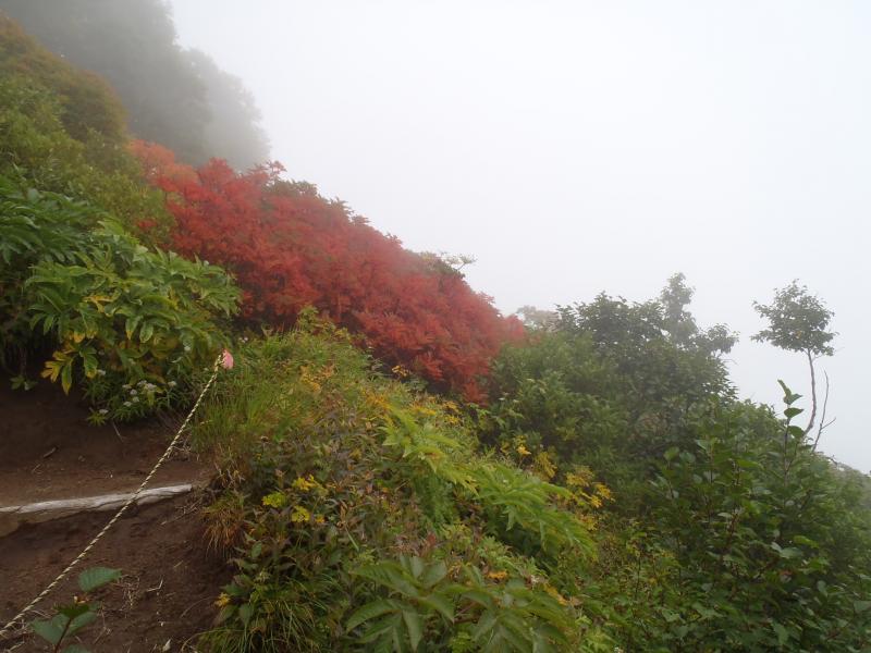 初日はあいにくの空模様で終始ガスが立ち込め、小雨の降るような天気でした。