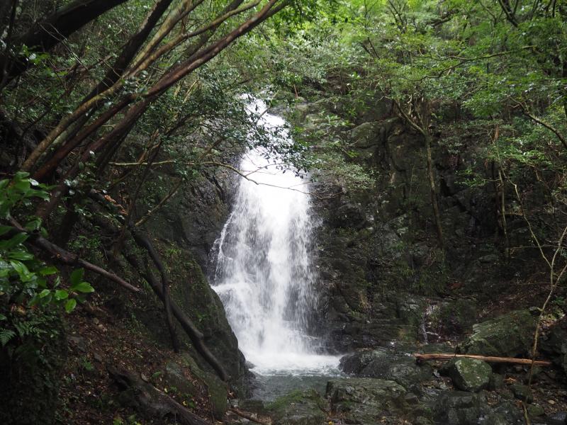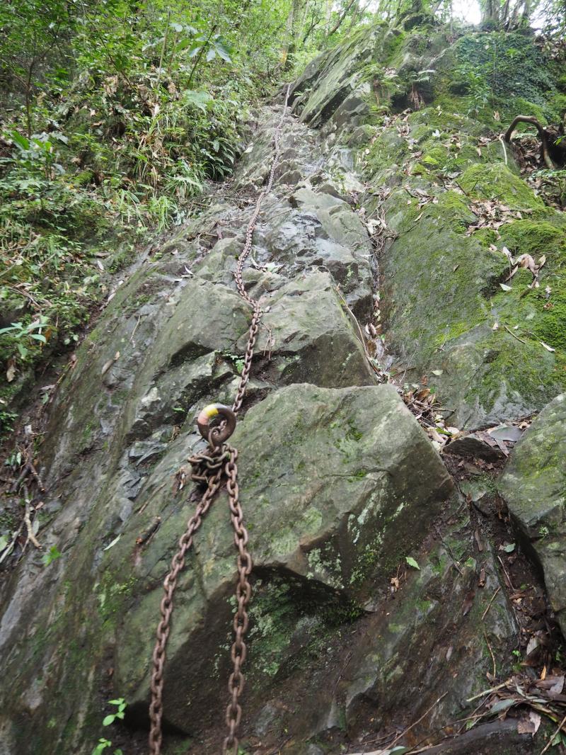 無事渡り終えるとほどなく赤い橋が見えてきます。ここが第一の滝。沢チームの入渓地点です。やはり今日は水量が多いようで滝も半端なくどどーーっと流れてます。“気を付けて~”とお互い挨拶をして私は山頂へと向かいます。滝を巻くように登るルートには鎖やロープが。足場も不安定で滑りやすくルートも分かりずらい、、、一人でちょっと不安。どきどきしながら二の滝、三の滝へと進みます。水量もあって滝は見応えあり!!でした。(みんな大丈夫かな)