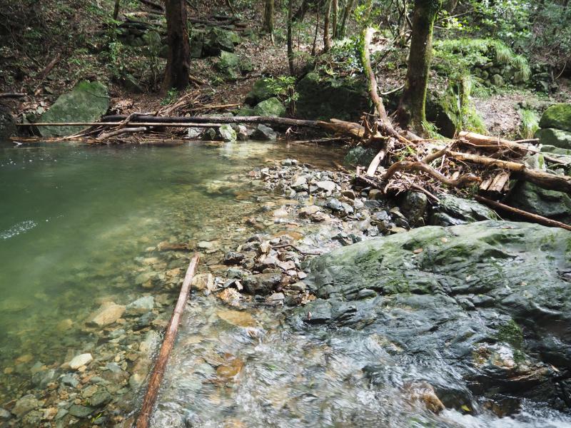 七の滝を過ぎるとややゆるやかになり川幅が広くなりました。みんなはここでランチかな、と思っていると私の進むべき登山道が川の向こうに見えるではないですか!えっっ、ここを渡る?!無理無理無理。やはり水量が多くて渡れそうにありません。一人だし無理せず撤退か?と思ったのですがとりあえず先に進んで渡れそうなところを探しウロウロ。なんとか水量が少なくて足場がある所を見つけて渡りました。これ2個目の核心。