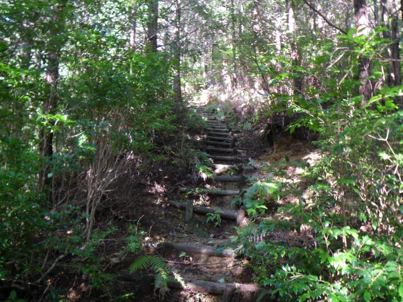 ④登山口からは稜線まで延々と木の階段道ですが、歩きやすいです