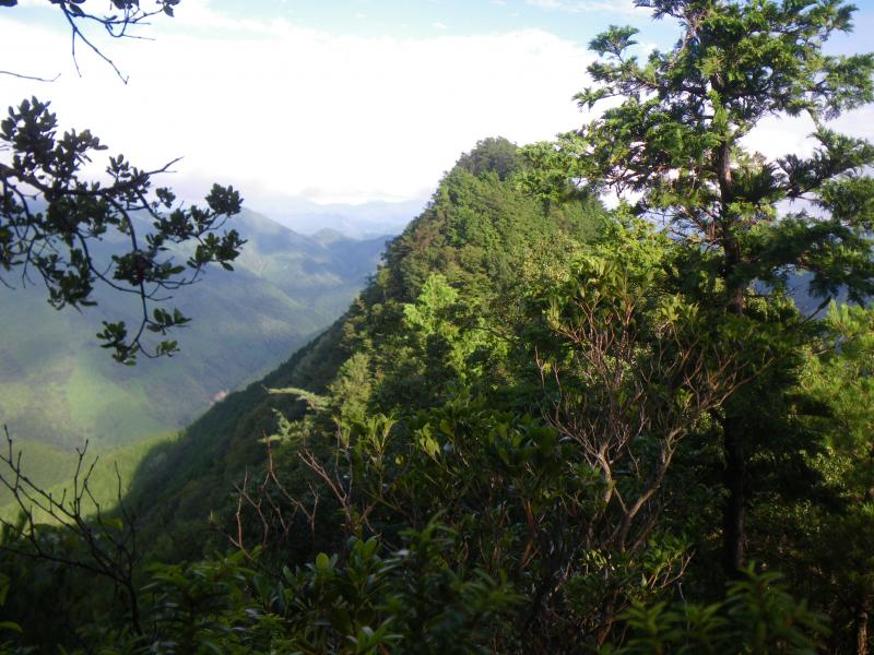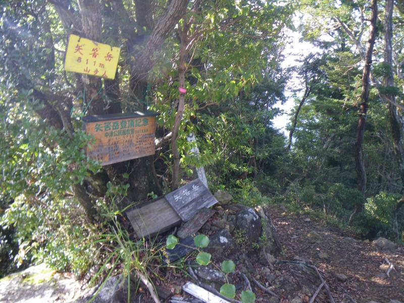 矢筈岳(やはずだけ・811m)は関西百名山の一つで尖った双耳峰の山。弓のつるをかける部分(矢筈)に似ていることに由来しています。山頂近くでは、馬の背になっていて、やや荒々しいが、山頂からの展望もよく、周囲の山々も海岸線まで見渡せます。