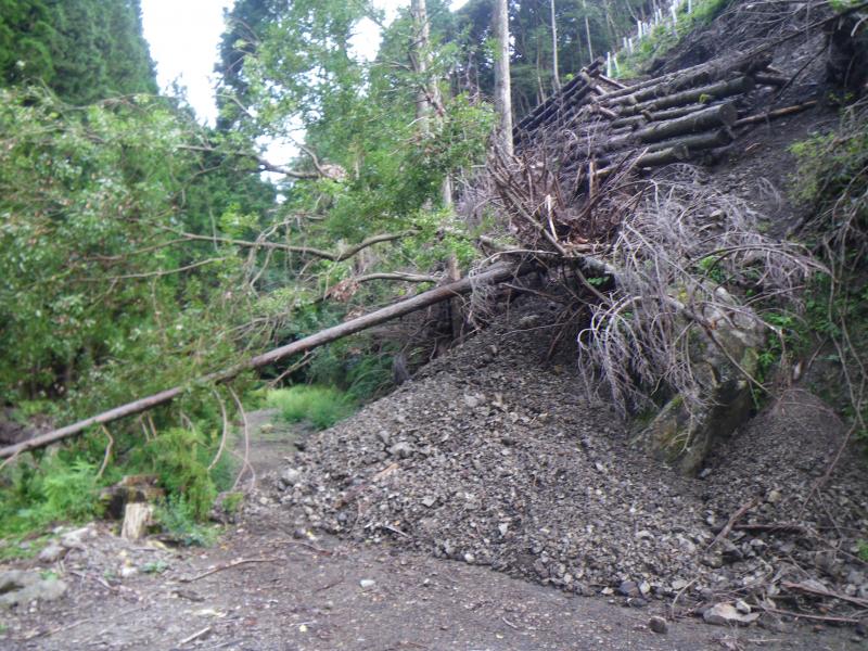①鷲の川林道平成25年1月31日~27年3月31日まで木材搬出作業で通行を控える旨の注意書きがありました。今回は夕方に入山しているためか作業はしていないようでしたが、山頂や帰りの林間広場に看板があるのに気づきました。上記の期日には小谷林道から登るようにしてください。