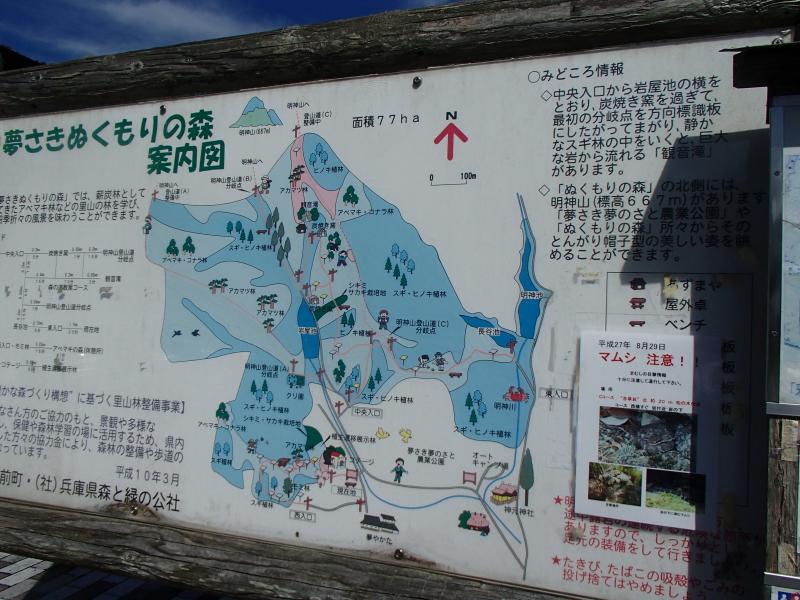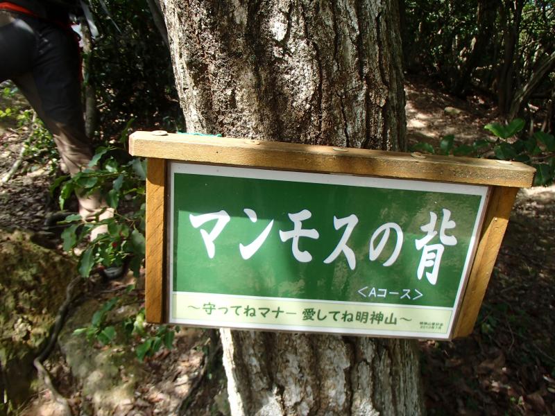 - 夢やかた夢のさとP(5分)Aコース登山口(40分)大黒岩(25分)5合目(85分)8合目(30分)明神山山頂(100分)夢やかた夢のさとP