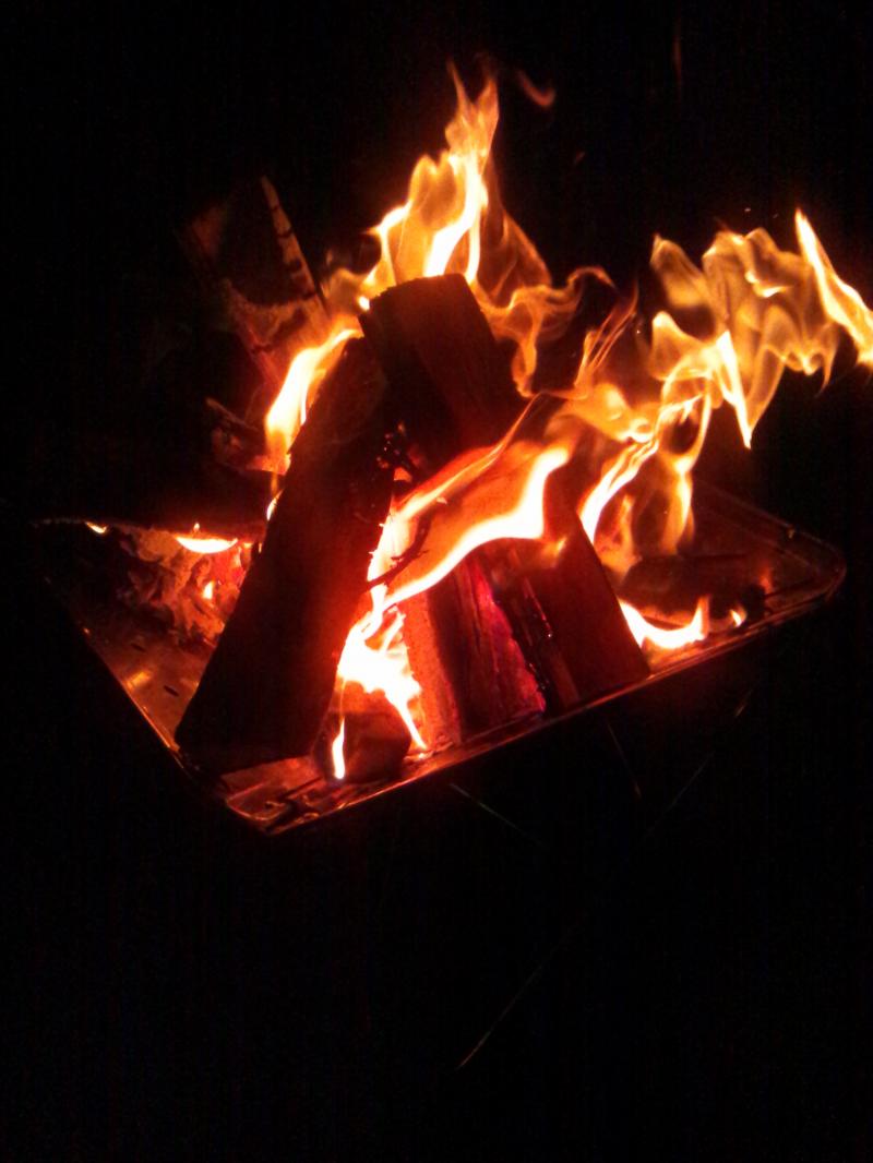 スノーピーク焚火台L・・・暖もとれるし、下準備から最後まで大活躍。秋の夜長に最適です♪