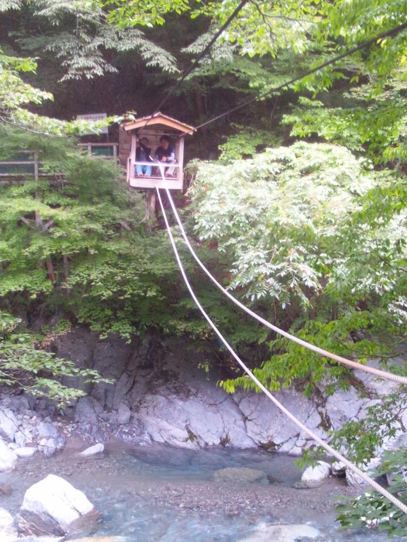 でも、野猿に乗って渡ることも出来ます。乗ったら必死にロープを引いてくださいね。