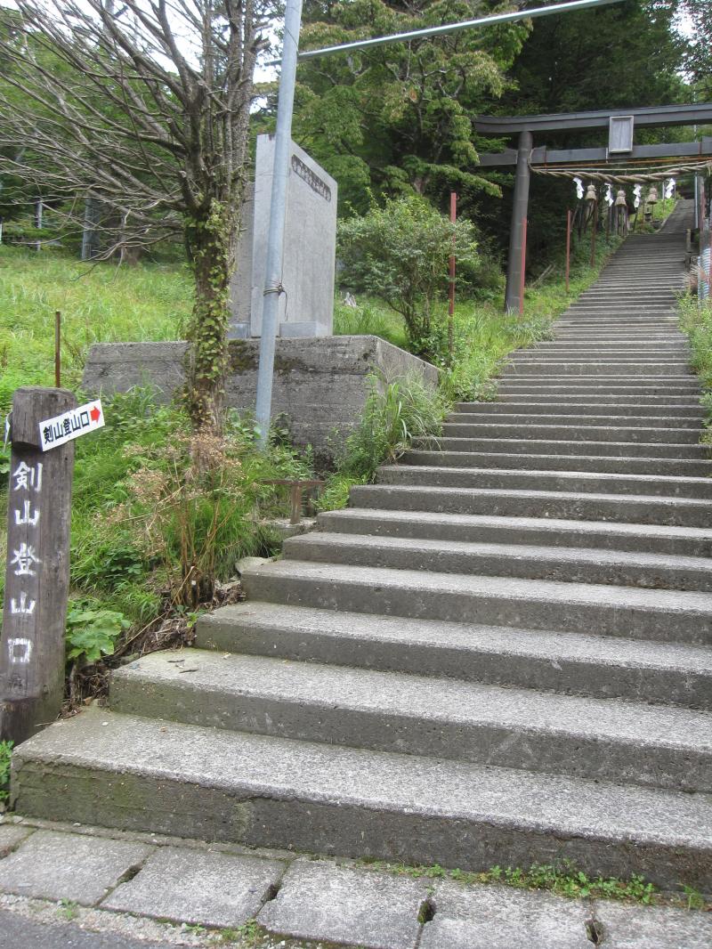 リフト乗り場の駐車場から出た先にある剱神社の階段からスタート。