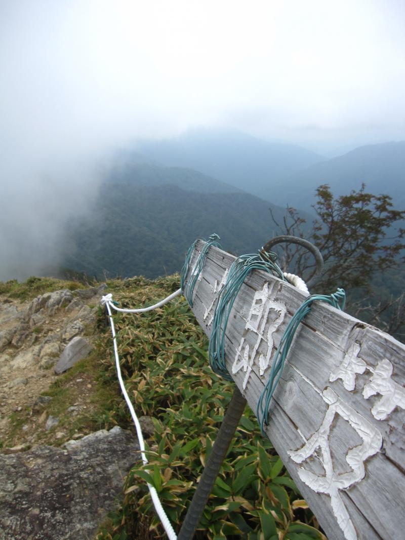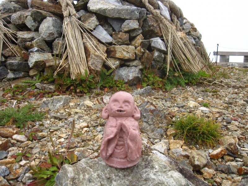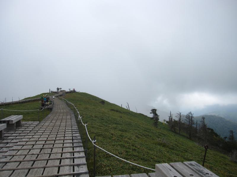 本日はあいにくのガスで、山頂では見晴らしの良い尾根道が見えず。。。