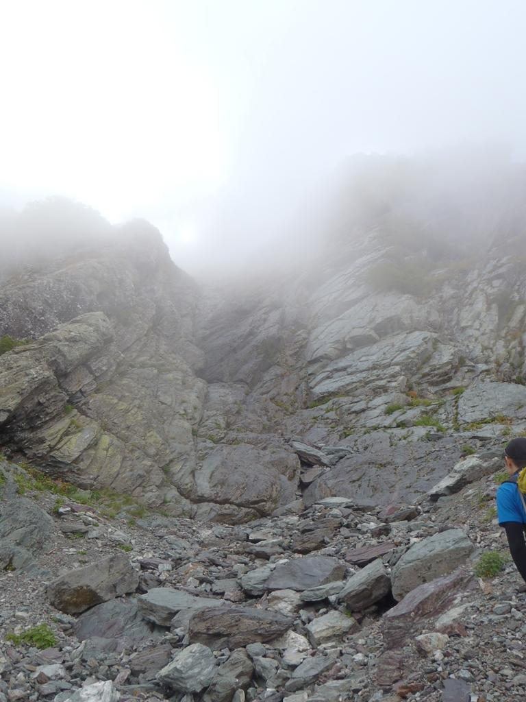 第4尾根終了点付近の大崩壊後は怖ろしく、長居したくない感じ。