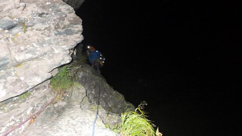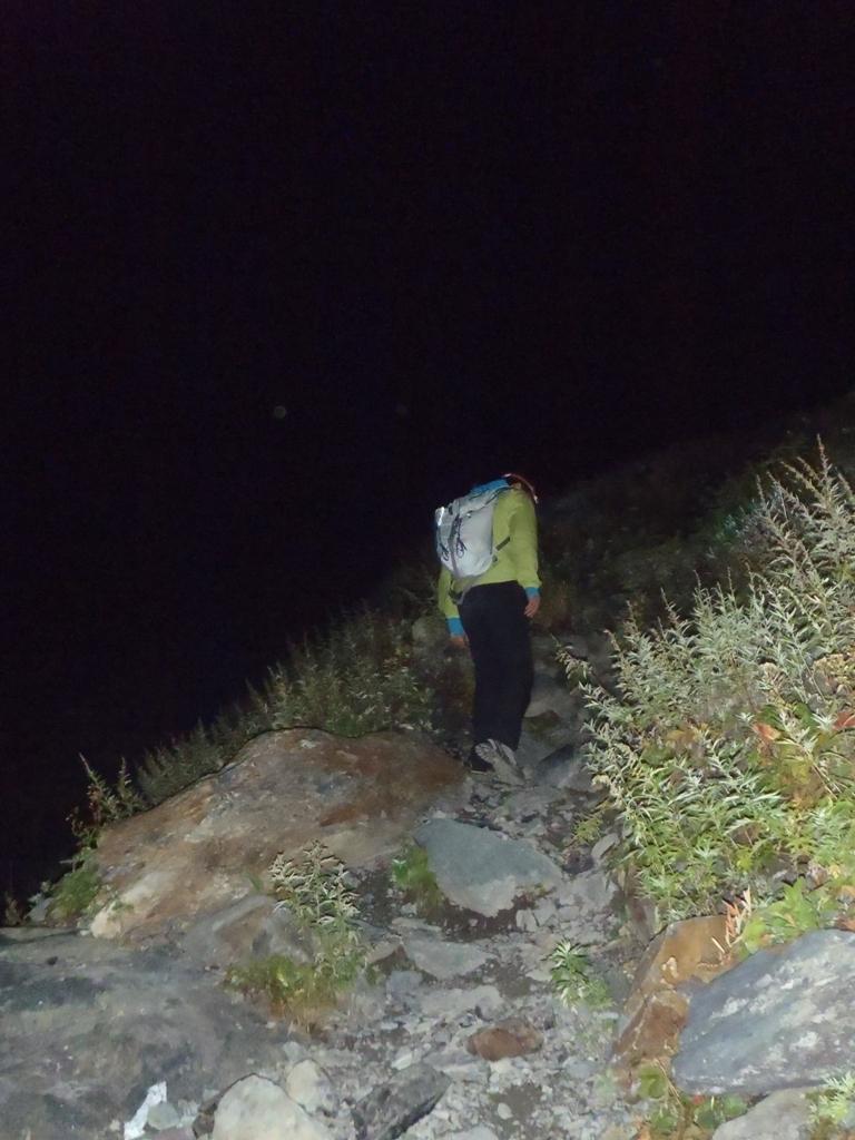 下見のおかげで順調にたどり着けました。明るくなるまでまだ時間がありましたが、待つのも面倒なのでヘッデンを点けてクライミング開始。