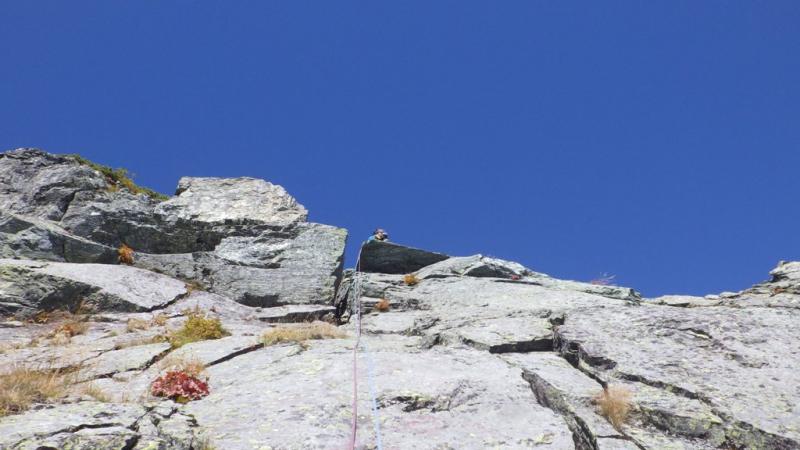 これが下部フランケの最終ピッチだと勘違いして登る。変なとこでピッチを切るハメに。