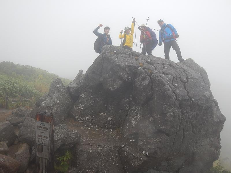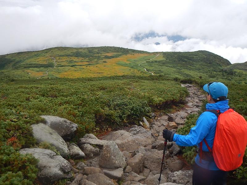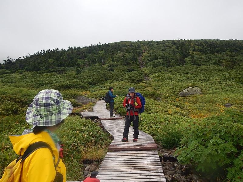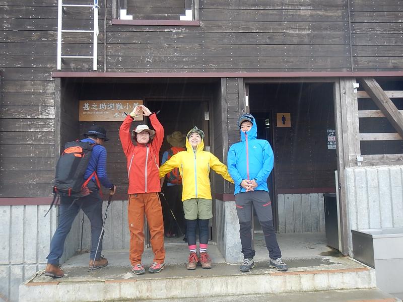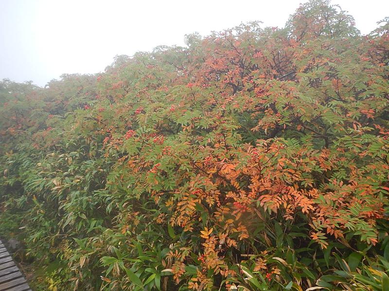 天候のせいもありますが九月に入りやはり肌寒い。甚之助小屋で雨が強くなり雨具を装着。それでも登りは汗が出る・・・