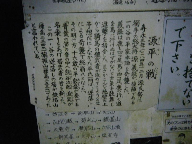 - 須磨裏公園⇒(65分)鉄拐山⇒(85分)高取山⇒(30分)鵯超駅⇒(80分)菊水山⇒(35分)鍋蓋山⇒(25分)市ケ原⇒(70分)摩耶山⇒(85分)六甲最高峰⇒(100分)阪急宝塚駅