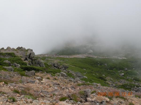 避難小屋を過ぎる前ぐらいから、メンバーのひとりが足の不調。ペースダウン。