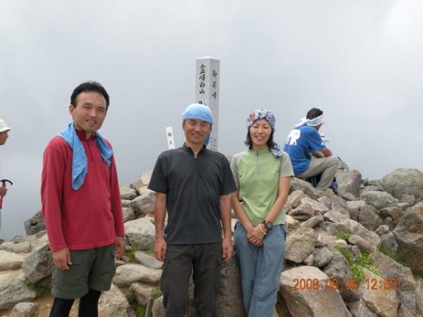 - 大白川登山口7:20-大白川から1km7:50-8:03(休憩)8:08-大白川から3km9:08-9:12(休憩)9:18-9:48大倉山避難小屋9:40-大白川から5km10:00-10:15(休憩)10:22-分岐点11:02-室堂11:25(休憩)12:10-御前峰2702m12:43(休憩)13:05-室堂13:33(休憩)13:45-大倉山避難小屋14:53-大白川登山口16:42