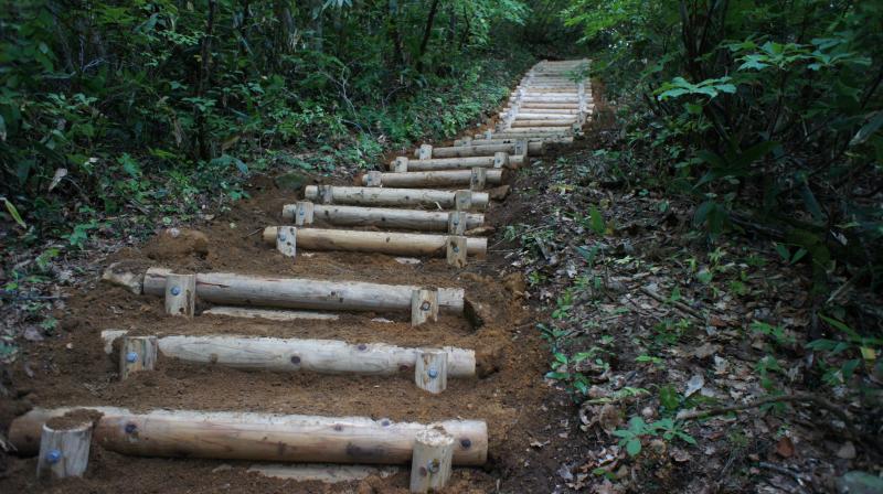 環境庁による整備が進んでいる登山道は、出来上がるとかなり歩きやすそうでした。