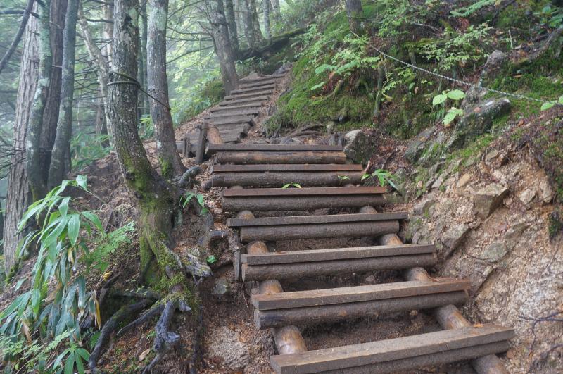 急登が続くので、トレッキングポールやサポートタイツがあると◎