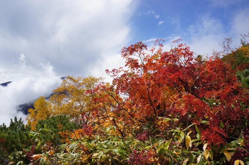 中房温泉付近は色づき始め、合戦小屋~稜線まではピーク♪燕山荘付近は少しピークが過ぎたところでしょうか・・・^^