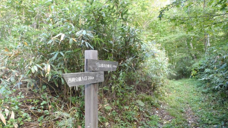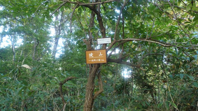 - 西岡水源地公園駐車場(30分)焼山(15分)山部川分岐(30分)白旗山(25分)分岐(30分)西岡水源地公園駐車場