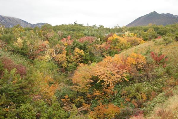 途中から風が強くなり雨も降ってきましたが弥陀が原周辺はきれいに紅葉していて