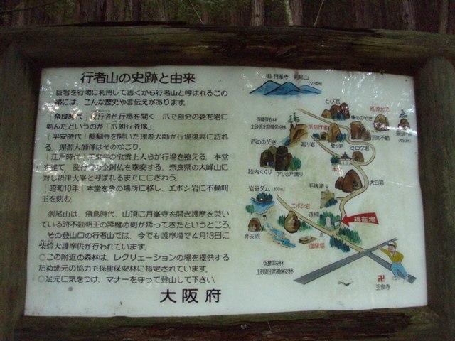 - バス停・行者口~30分~行者山・登山口~25分~行者山~40分~剣尾山(784m)~25分~横尾山(784.8m)~35分~トンビカラ~30分~剣尾山・登山口~20分~バス停・行者口