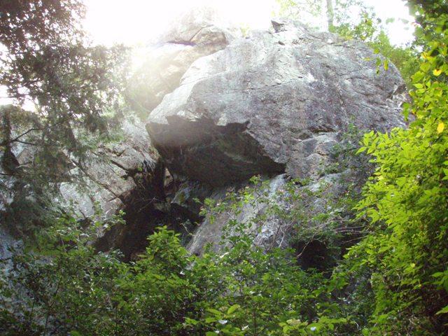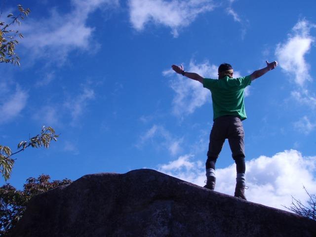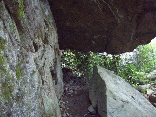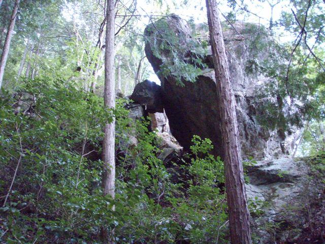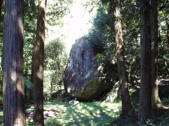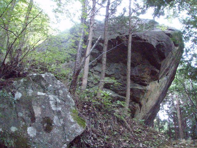 剣尾山・登山口から入山。よく整備された階段状の登山道を登って行くと、修験の山らしくあちこちに巨岩が点在していました。大日岩からは踏み跡を辿って、蟻の戸渡り・胎内くぐりルートで行者山の山頂に到達。