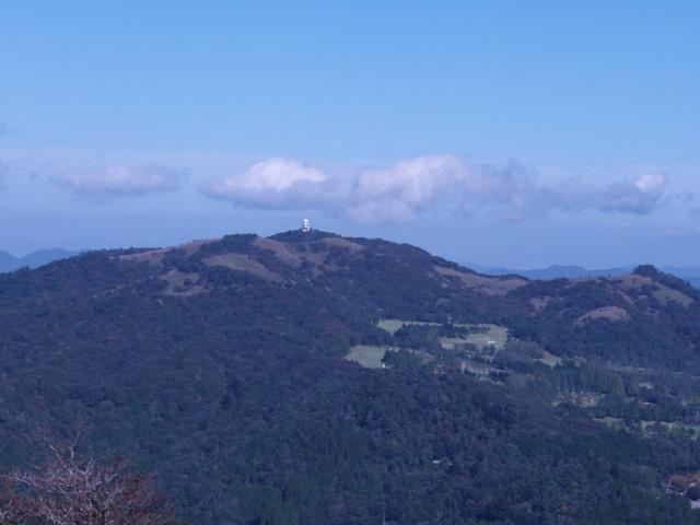 剣尾山から少し下って、若干傾斜のある坂を上りきると横尾山に到着。三角点あり、展望あり。気温25度。大野山方面の展望が綺麗でした。