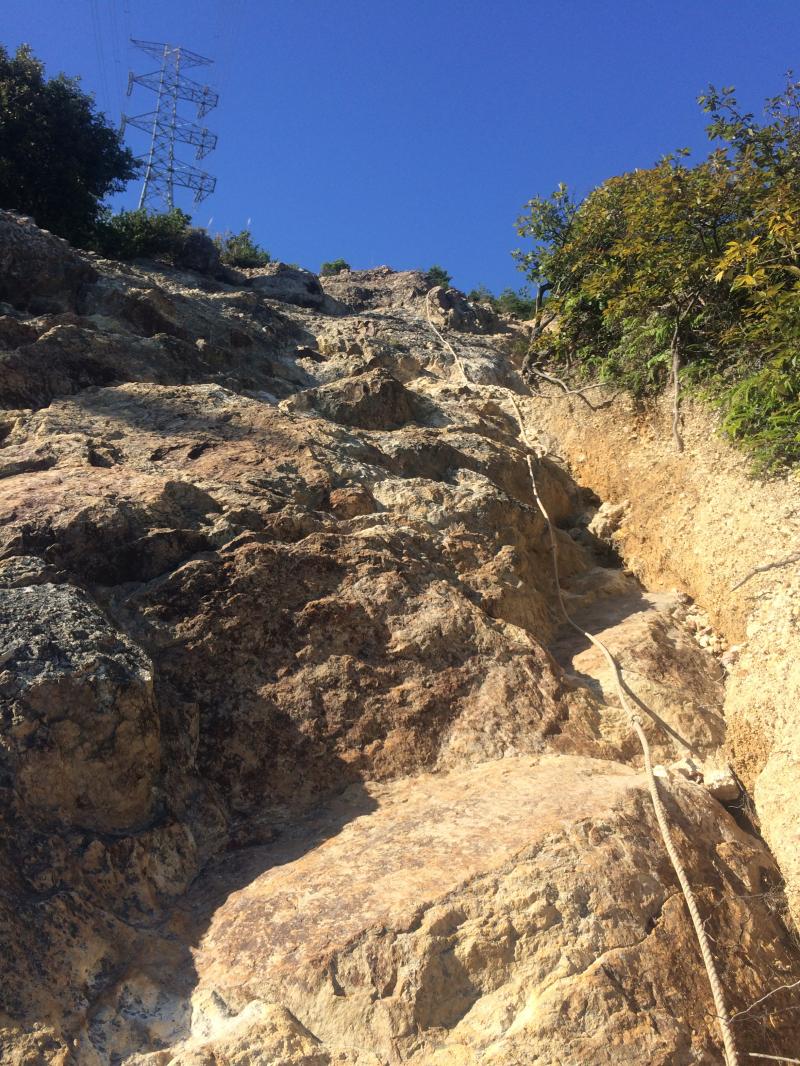 急登エリアには補助用のロープがありますが、ところどころ摩耗していて細くなっています。