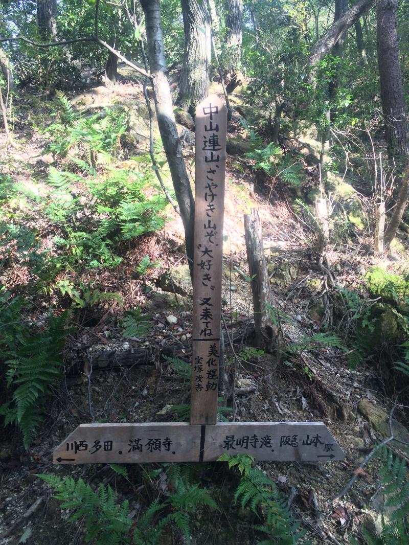 そこから徒歩で約30分で満願寺西山(中山)と最明寺滝の分岐点へ。