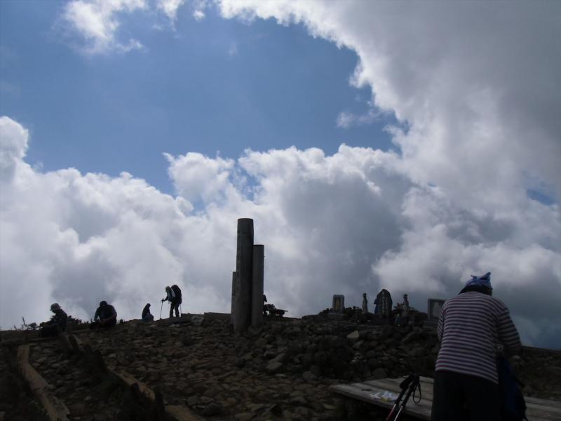 山頂では少しだけガスが抜けたものの、少々寒かったので尊仏山荘さんでだらだらさせてもらいました。