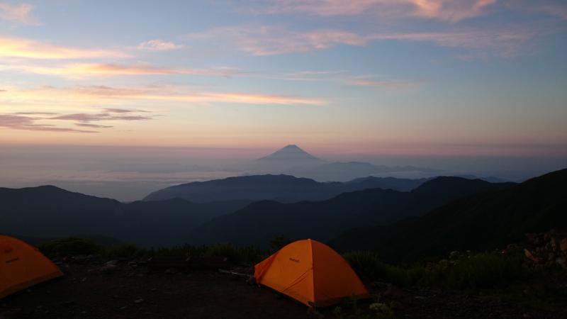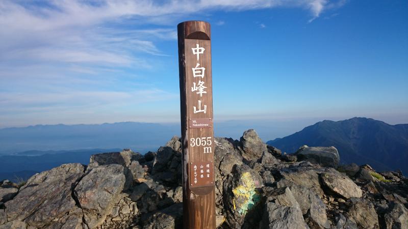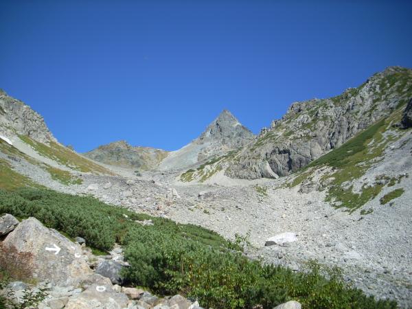 間ノ岳を越えて農鳥岳に行く登山者が多い中、白根三山を制覇したい思いを抑えて、テントを撤収して広河原に下りました。