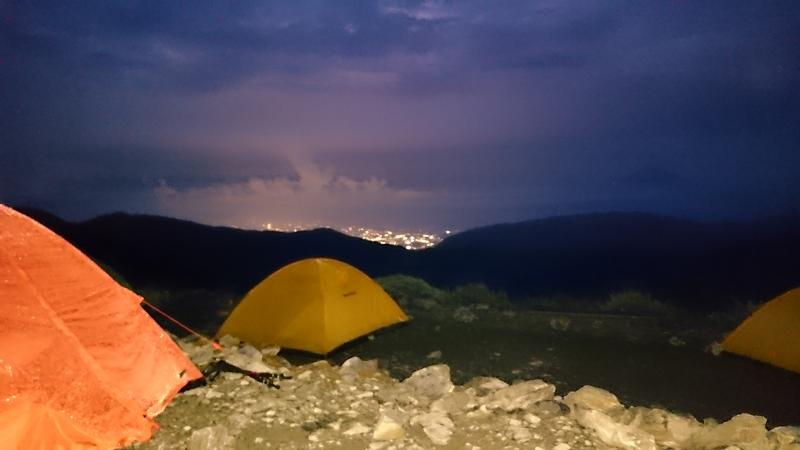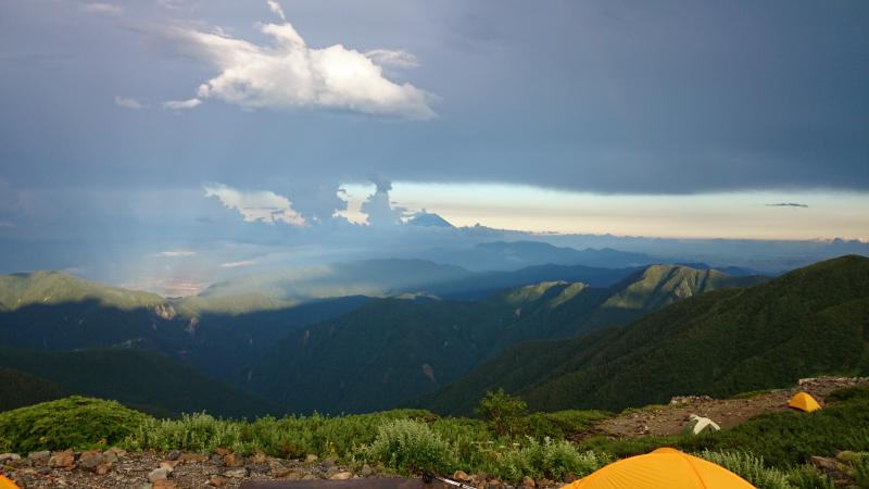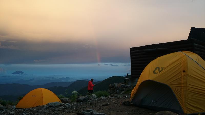 初日、草スベリの急登で体力を使い、北岳山頂では高山病か疲労で頭痛に苦しみ、北岳山荘に着くなり雷雨。