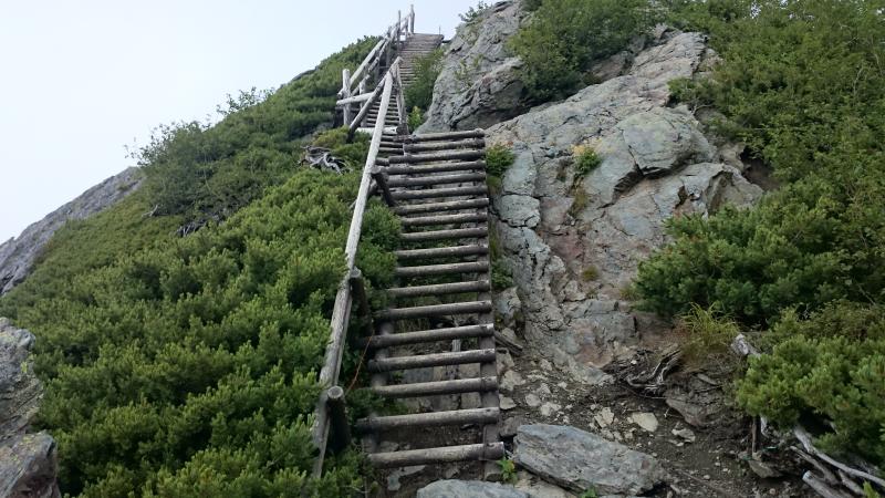 八本歯のコル付近は急な梯子が多いので注意してください。