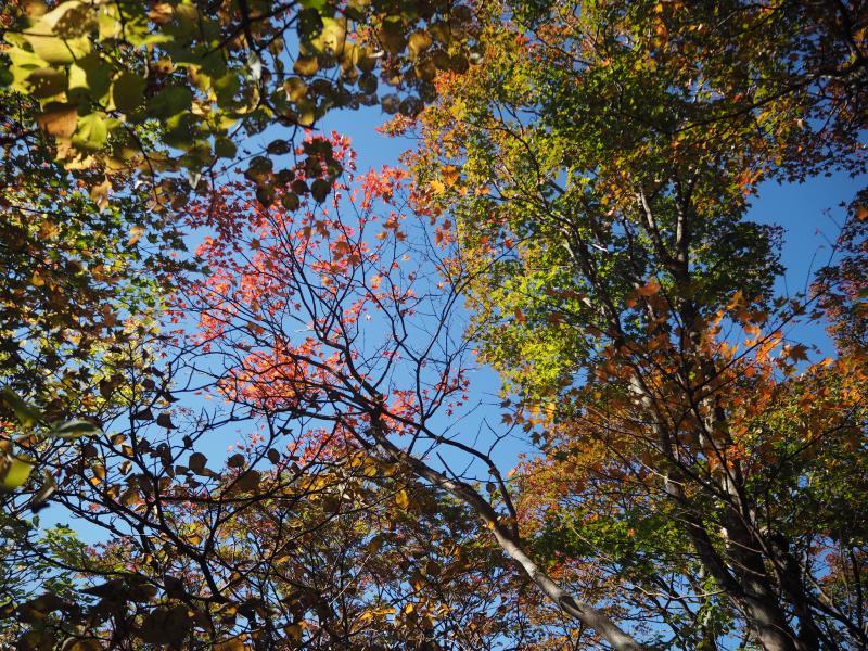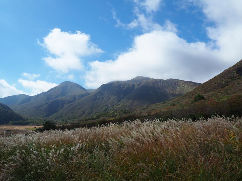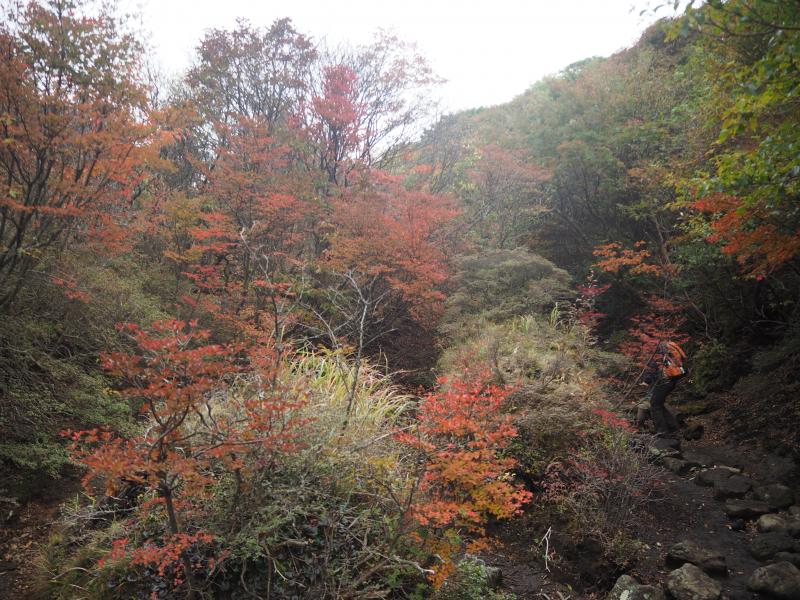 今日のコースは長者原から雨ヶ池を通り坊がつるを抜けて大船山へ。雨ヶ池までは所々色づいているもののまだまだ葉は緑色。