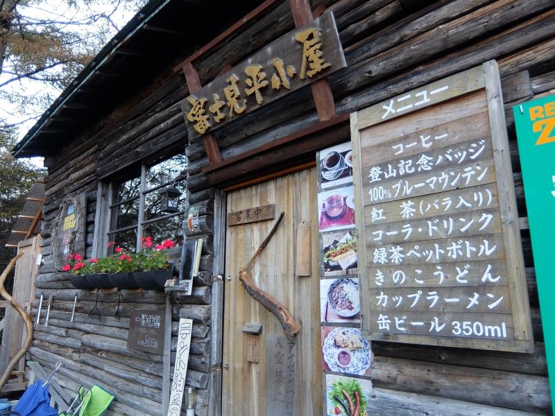 森の中の急な斜面を登っていくと富士見平小屋に到着。