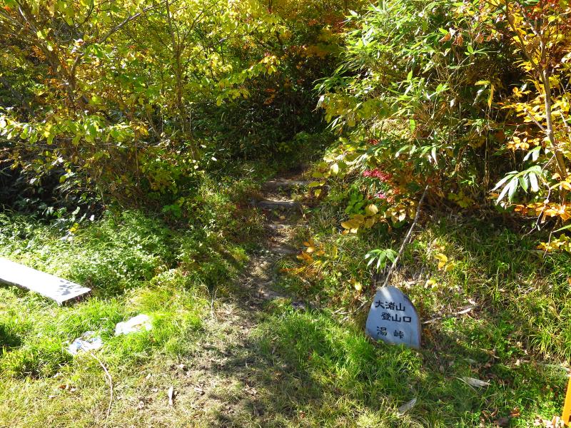 - 鎌池~(車)~湯峠登山口~(25)~大渚山~(20)~湯峠登山口