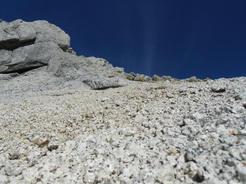 - 甲斐駒山頂手前、直登コースは昭文社地図だと波線ですが、目印ありますし、ホールドのある岩なのでさほど危険なし。
